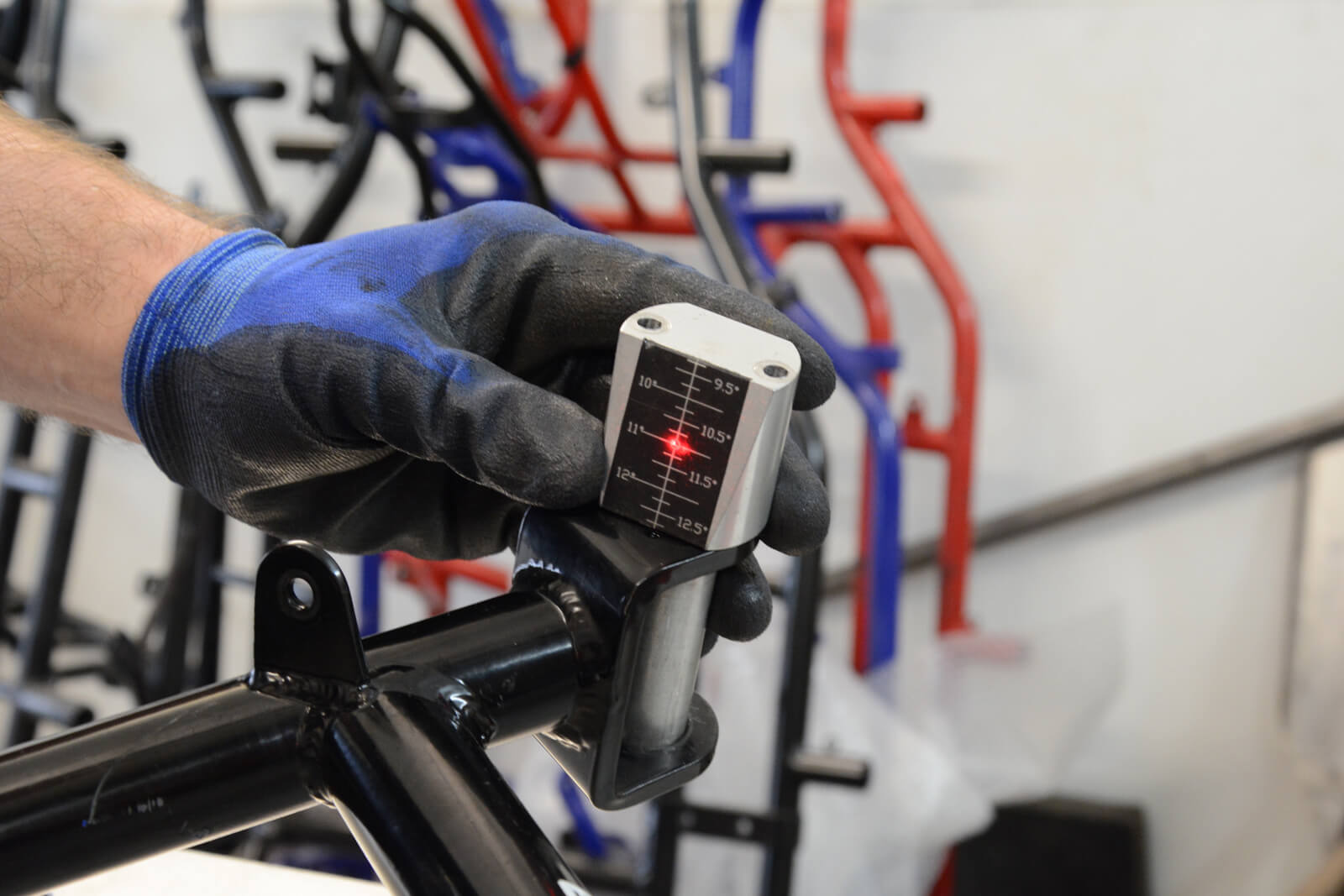 Die Rahmen- bzw. Chassisgeometrie eines Karts stellt den Fahrer und Mechaniker immer wieder vor neue Aufgaben. Regelmäßig muss das Chassis vermessen werden, will man ein optimales Setup für die jeweilige Rennstrecke finden.Denn ein Chassis verschleißt oder verformt sich auch im normalen Betrieb. Oft geschieht dies unbemerkt und vor allen Dingen unerfahrenere Piloten wundern sich in der Folge über ein verändertes Fahrverhalten, welches sie dann mit Setup-Änderungen versuchen in den Griff zu bekommen.Eine regelmäßige Kartvermessung kann viel Zeit, Ärger und letztlich auch Geld sparen. Bei Rennveranstaltungen sind die Verschleißerscheinungen entsprechend höher und im schlimmsten Fall gilt es sogar Unfallschäden zu vermessen und diese so präzise wie möglich zu reparieren. Deshalb bietet der KSCA Kart Shop einen Service zur Reparatur des Kartrahmens an. Mit dem höchst präzisen Laservermessungssystem von Sniper in Kombination mit hochwertigem Richtwerkzeug und einer professionellen Richtbank kann eine Fehleinstellung sehr schnell und zuverlässig kontrolliert und vor allen Dingen korrigiert werden. Es kann nicht nur die Rahmengeometrie hinsichtlich der Parallelität und Spreizung repariert werden, sondern auch kleine Unfallschäden lassen sich schnell und präzise korrigieren. Dabei ist eine Rahmenreparatur nicht einmal teuer.
