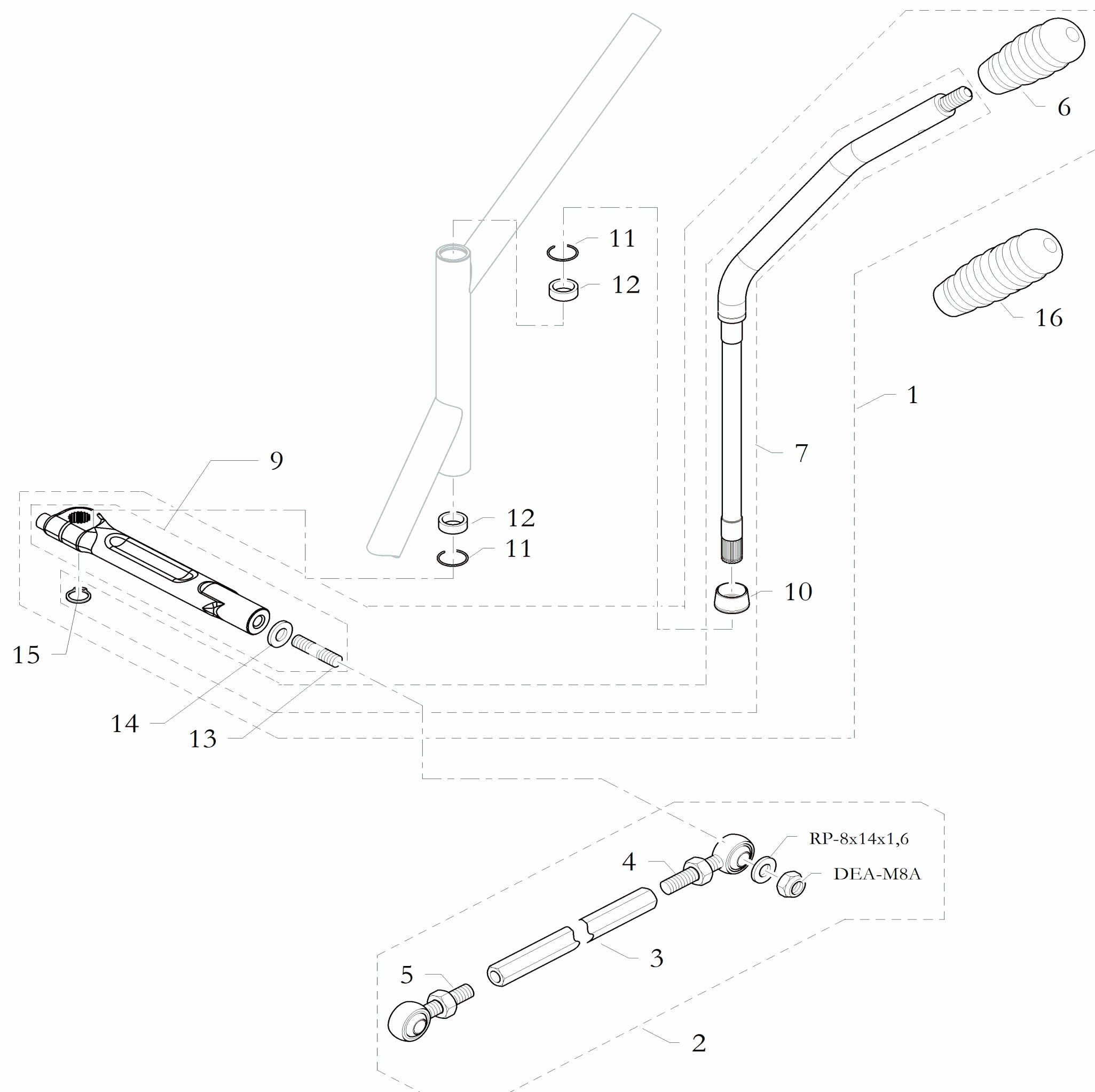 Birel gearbox lever assy.